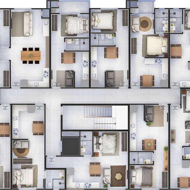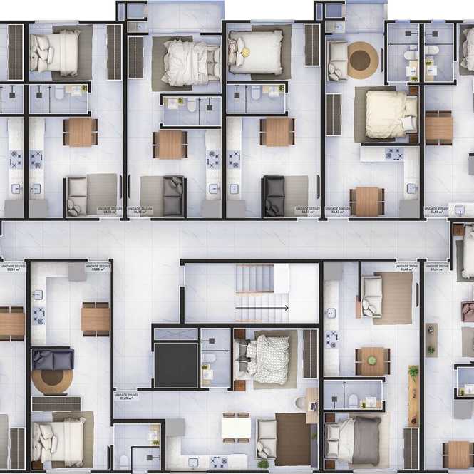 - **Versatilidade e Conforto:** Unidades residenciais que variam de studios a apartamentos de dois quartos, com ambientes integrados e sacadas.