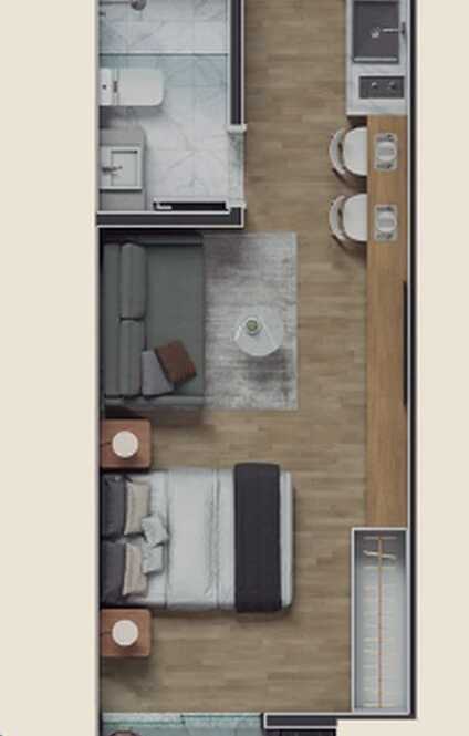 Planta 04 - 1 dorm 29,72m² - studio