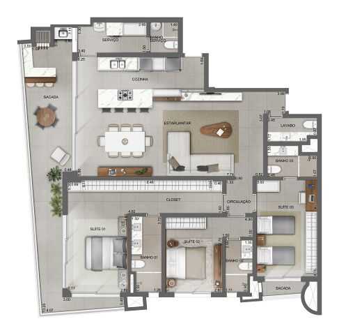 Planta 01 - 3 dorm 165 98m²