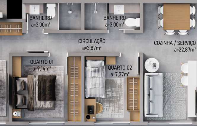 Planta 02 - 3 dorm 72,93m²