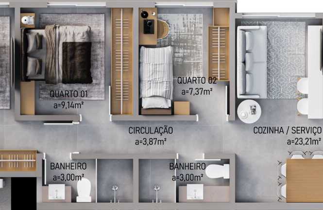 Planta 01 - 3 dorm 71,83m²