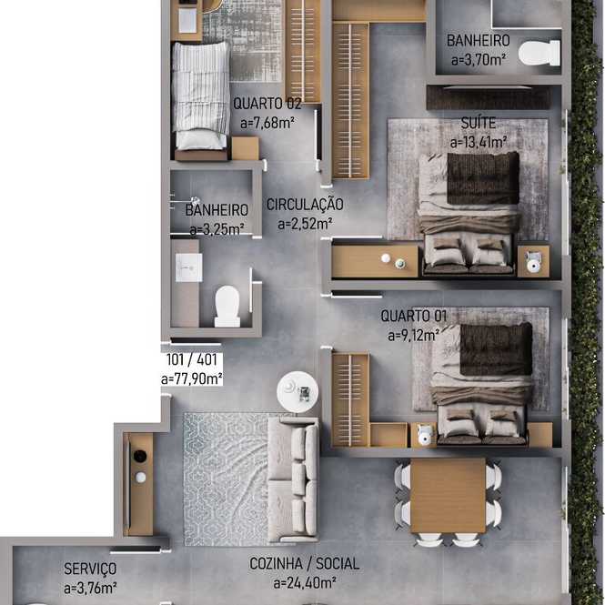 Planta 03 - 3 dorm 77,90m²