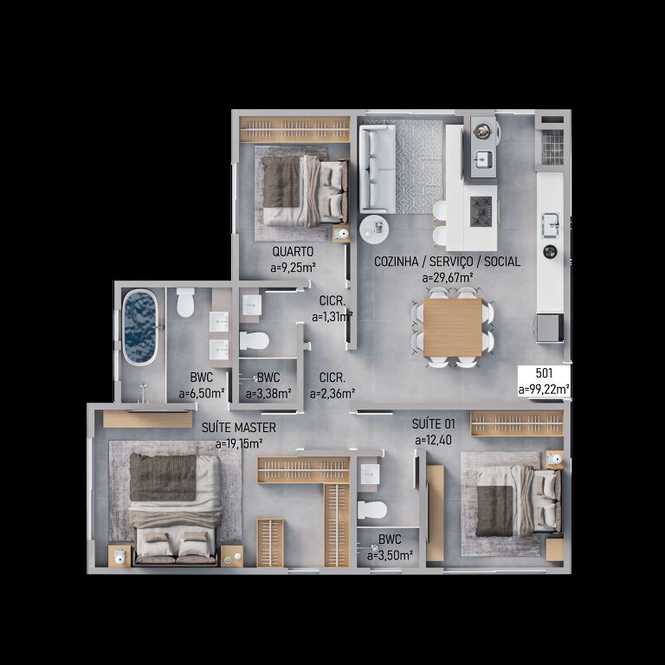 Planta 04 - 3 dorm 99,22m² - cobertura horizontal