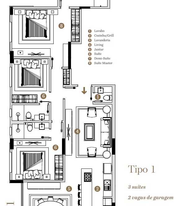 Planta 01 - 3 dorm 118m²