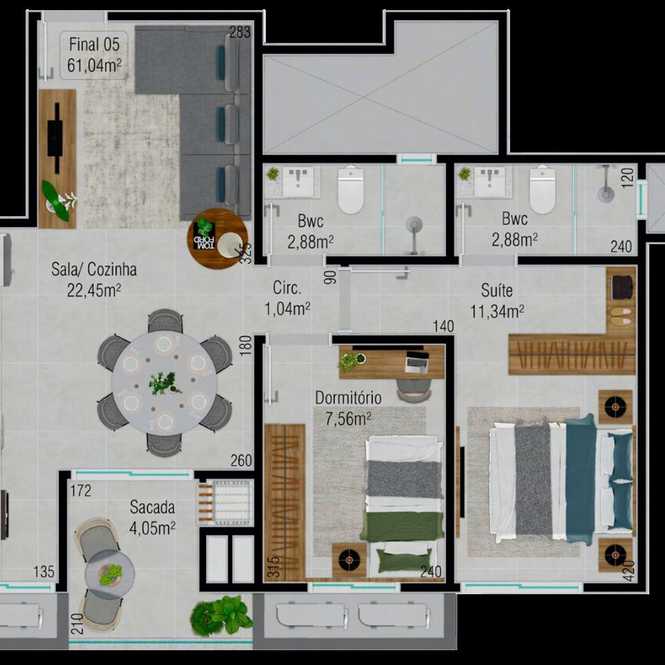 Planta 02 - 2 dorm 61,04m²
