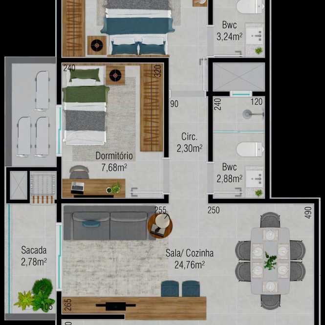Planta 03 - 2 dorm 61,51m²