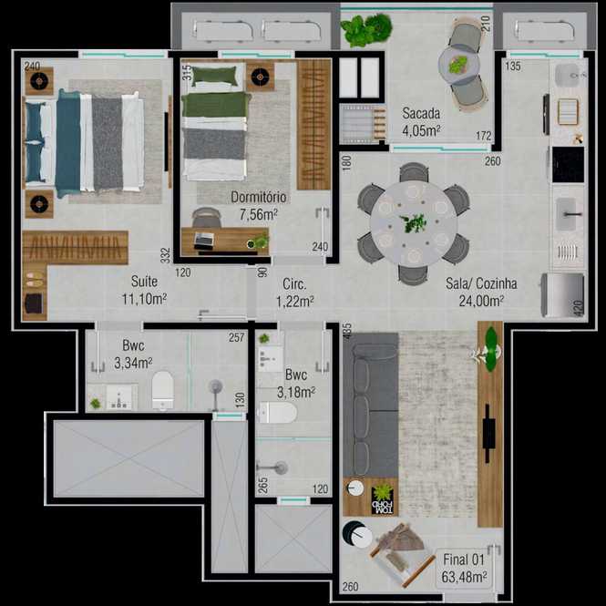 Planta 05 - 2 dorm 63,48m²