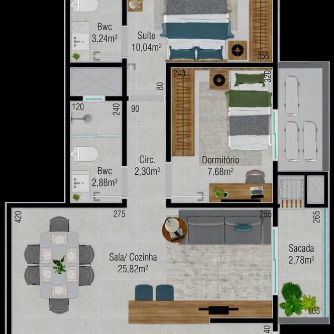 Planta 04 - 2 dorm 62,45m²