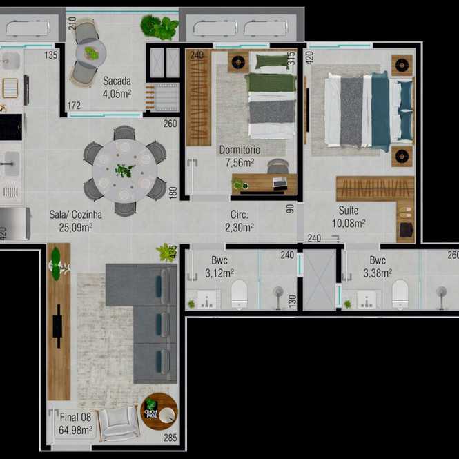 Planta 08 - 2 dorm 64,98m²