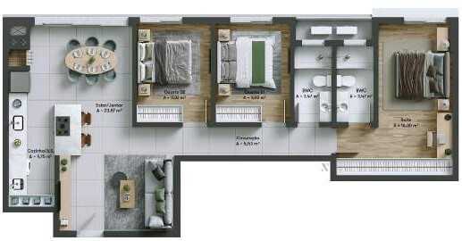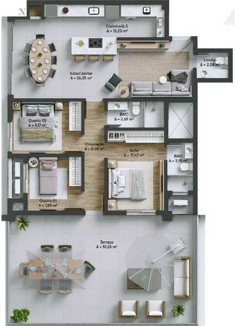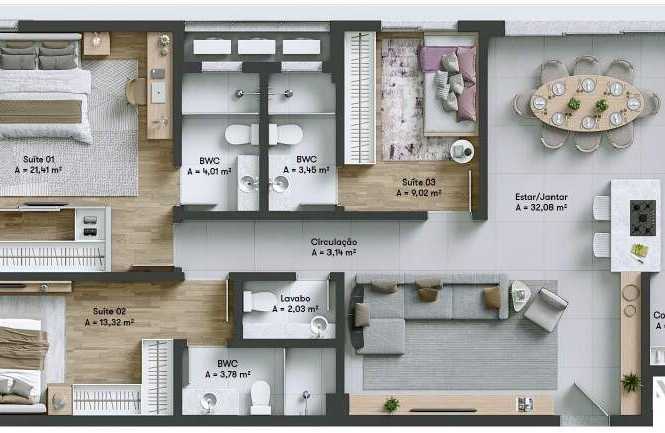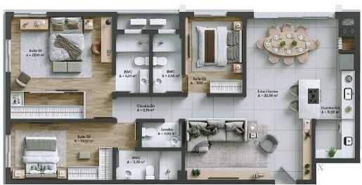 Planta 01 - 3 dorm 119 70m²