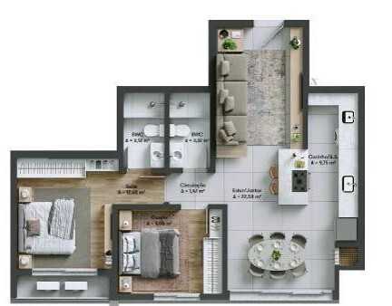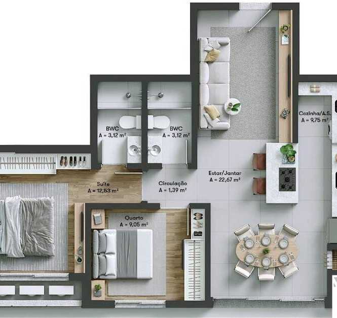 - **2 Banheiros**, projetados com acabamentos modernos e elegantes.