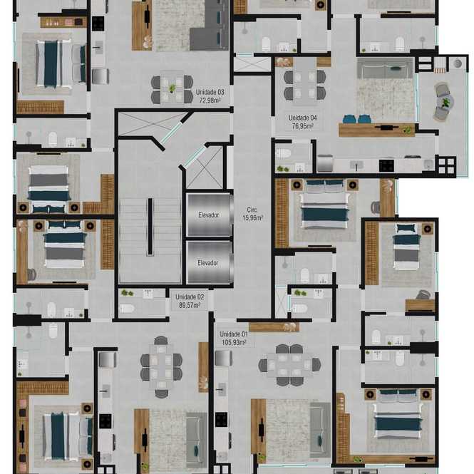 Planta 04 - 3 dorm 105,93m²