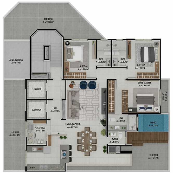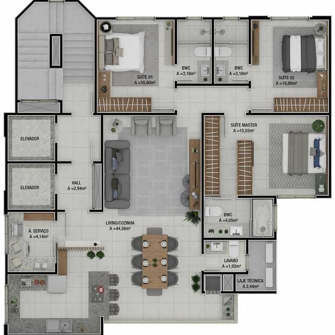 - **Espaço e Conforto:** 236m² de área privativa, projetados para oferecer o máximo de conforto e sofisticação.
