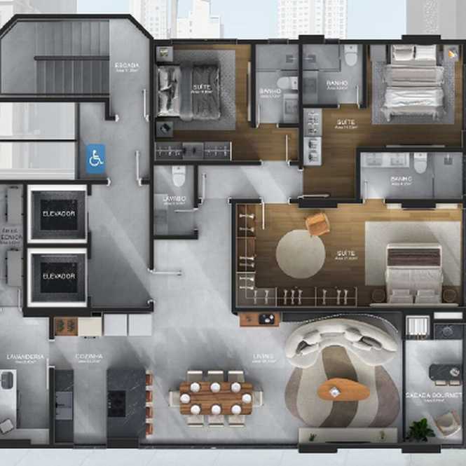 Planta 01 - 3 dorm 145,97m²