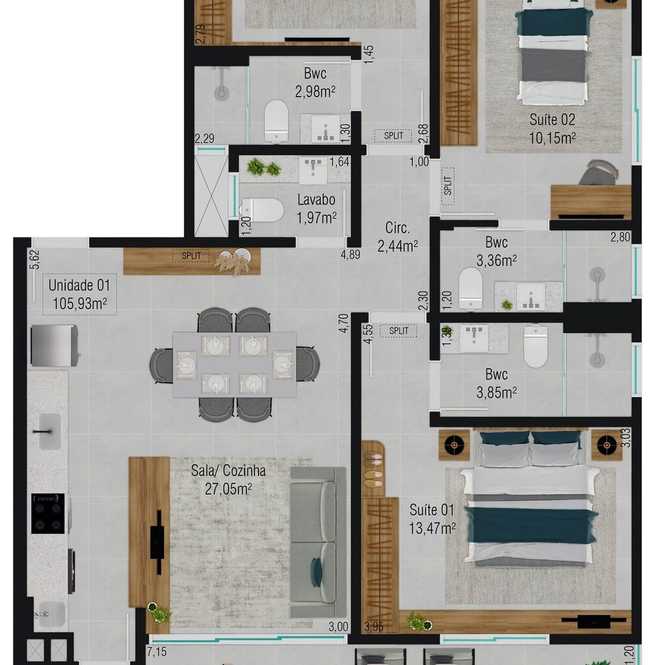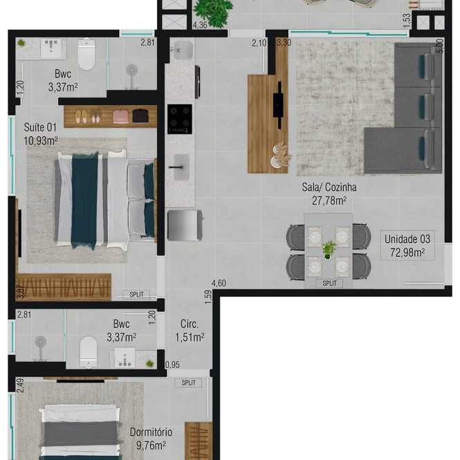 Planta 01 - 2 dorm 72,98m²