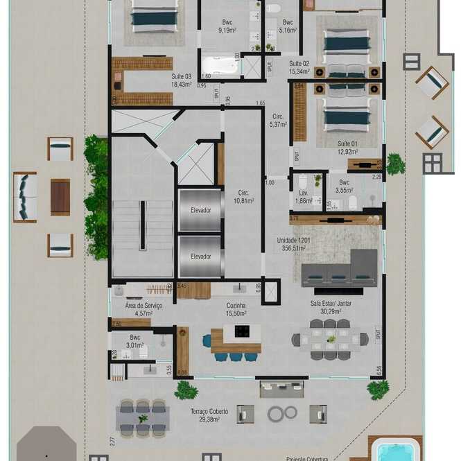 Planta 05 - 3 dorm 356,51m² - cobertura horizontal