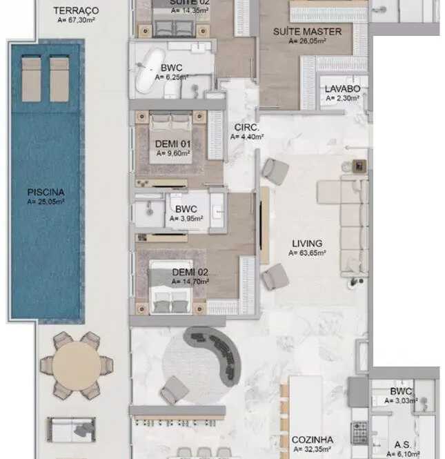 - Área Privativa de 319.28 m²