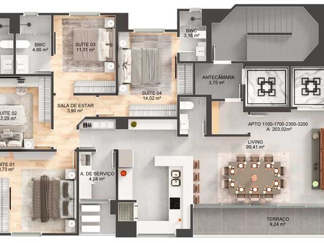 Planta 04 - 4 dorm 203,02m²