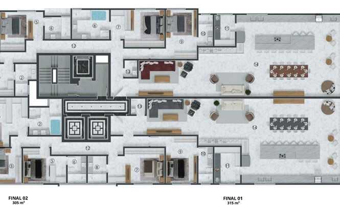 Planta 02 - 4 dorm 285m²