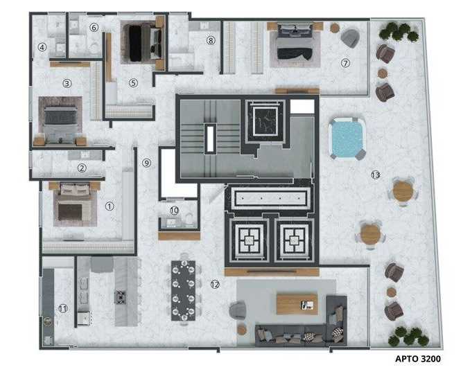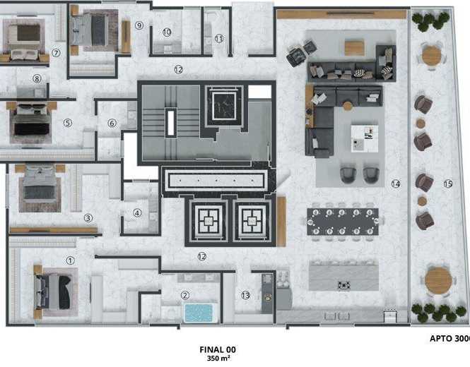 Planta 07 - 4 dorm 400m² - cobertura duplex - superior