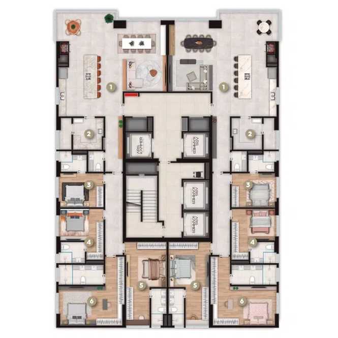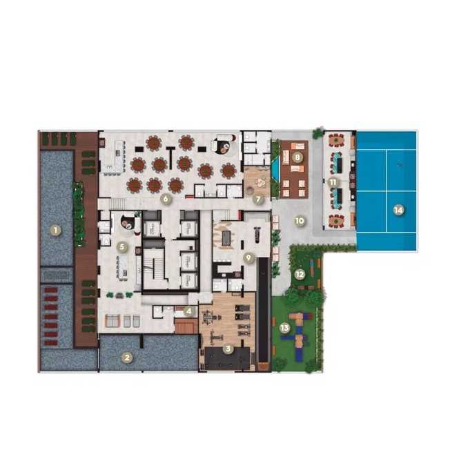 - Áreas de lazer que incluem piscina, academia e espaços gourmet