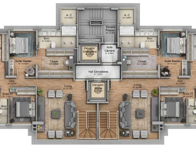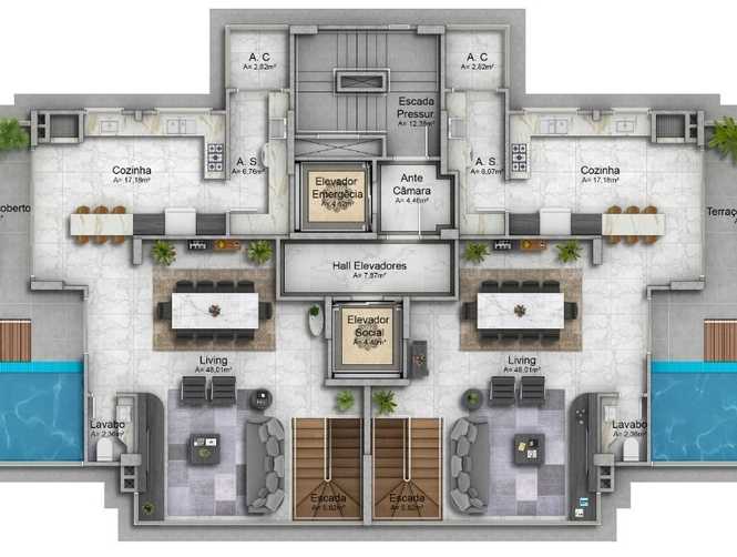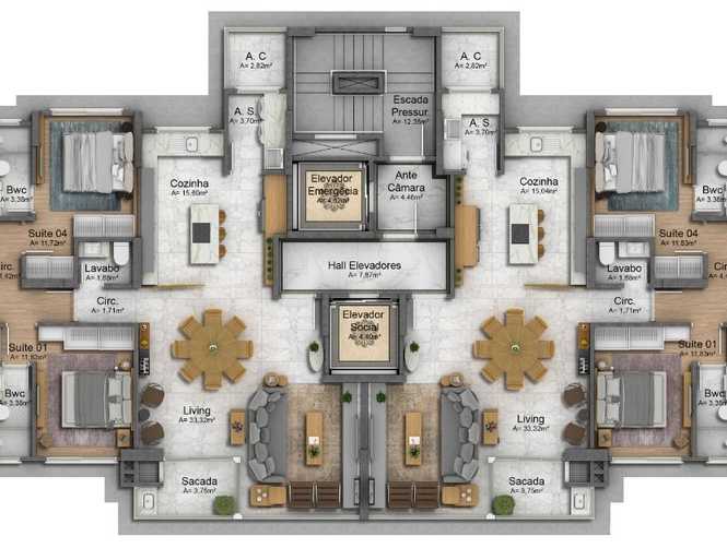 - Área Privativa de 296,2m², projetada para maximizar espaço e bem-estar
