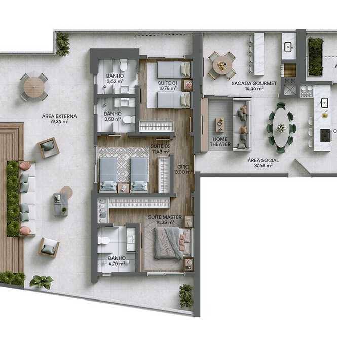 Planta 03 - 3 dorm 271,51m² - garden