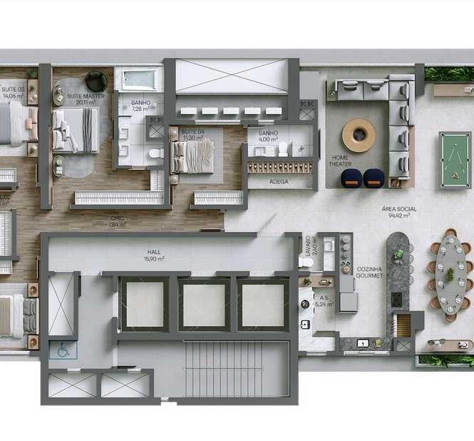 Planta 04 - 3 dorm 283,28m² - garden