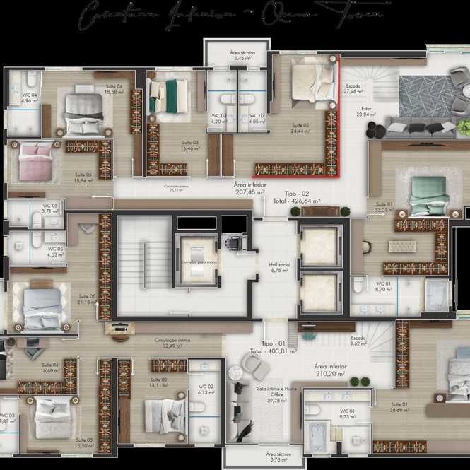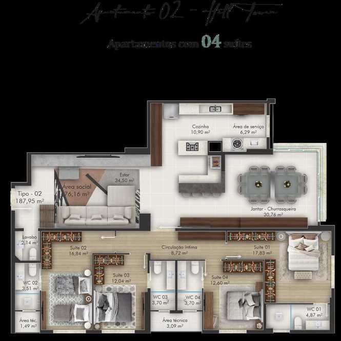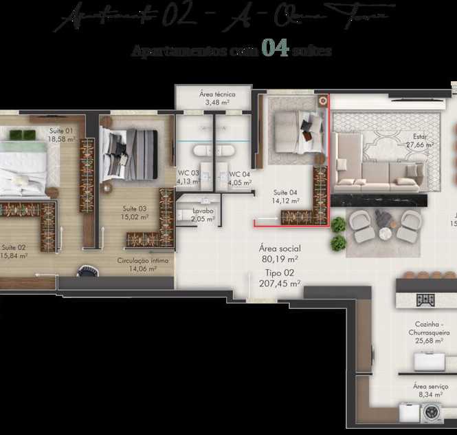 Planta 02 - 4 dorm 195 17m²