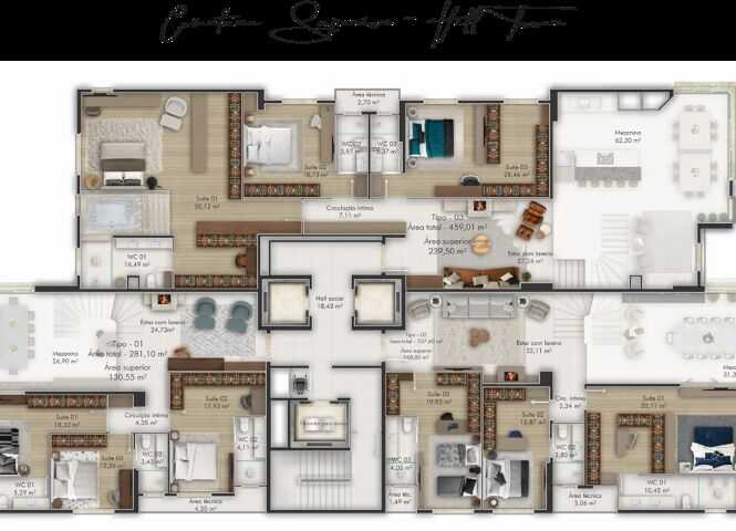 Planta 01 - 3 dorm 154 85m²