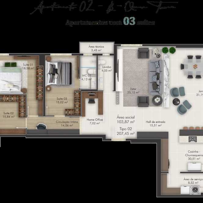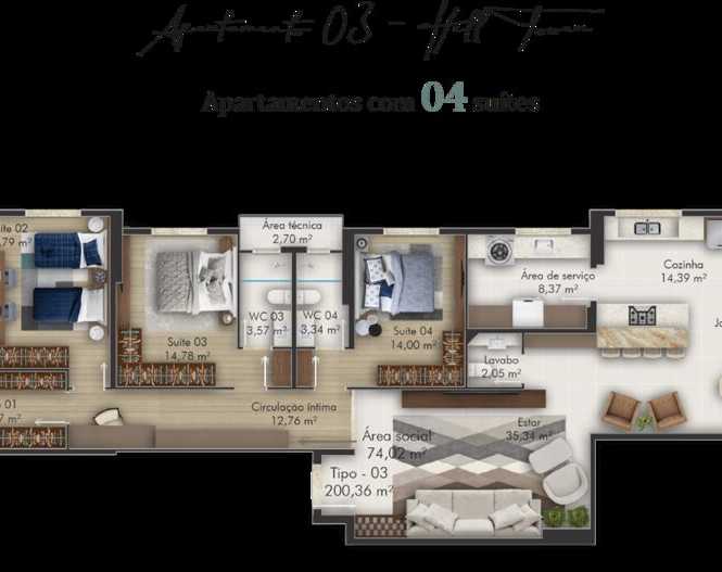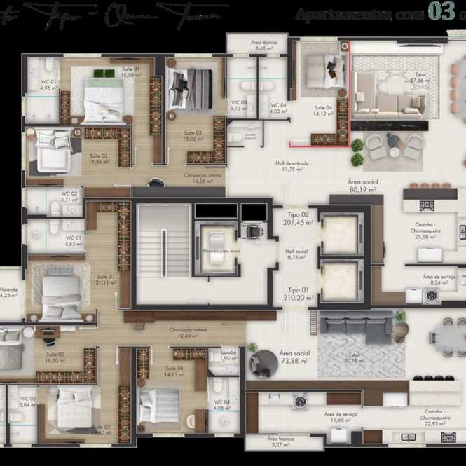 Planta 03 - 4 dorm 206 04m²