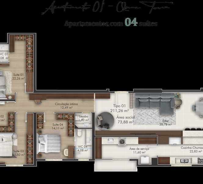 Planta 04 - 4 dorm 217 07m²