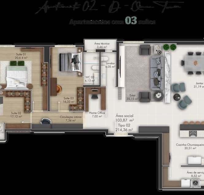 Planta 06 - 3 dorm 212 83m² - opção