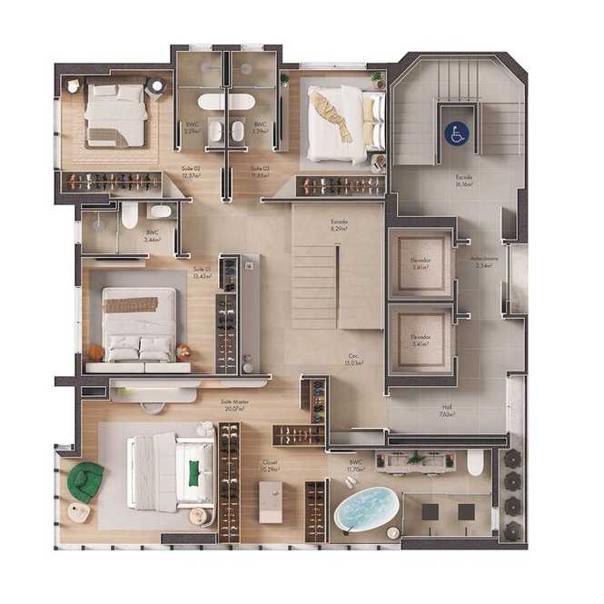 Planta 03 - 4 dorm 252m² - duplex - superior