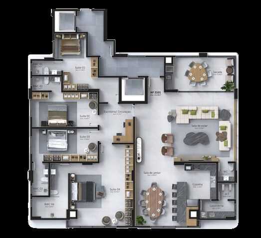 Planta - 4 dorm 251,48m² - penthouse