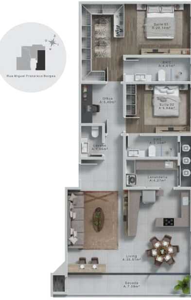 Planta 01 - 2 dorm 93 61m²