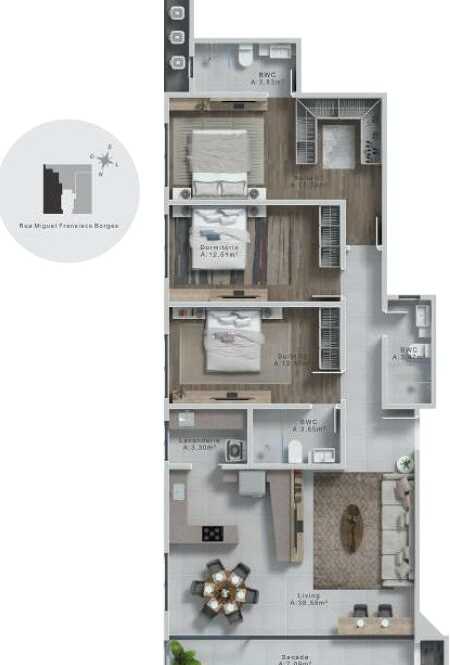 Planta 03 - 2 dorm 109 83m²