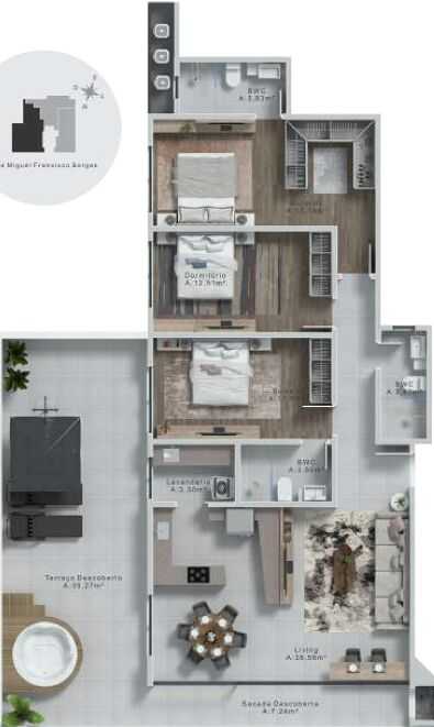 Planta 07 - 3 dorm 164 36m² - garden