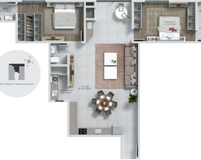 Planta 01 - 2 dorm 93 61m²
