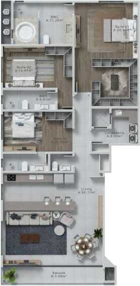 Planta 04 - 3 dorm 120 87m²