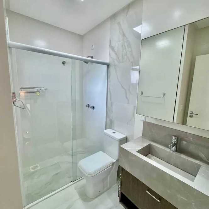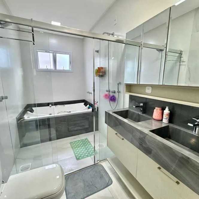 - 3 suítes, sendo 1 suíte master com banheira de hidromassagem, 2 chuveiros e 2 pias