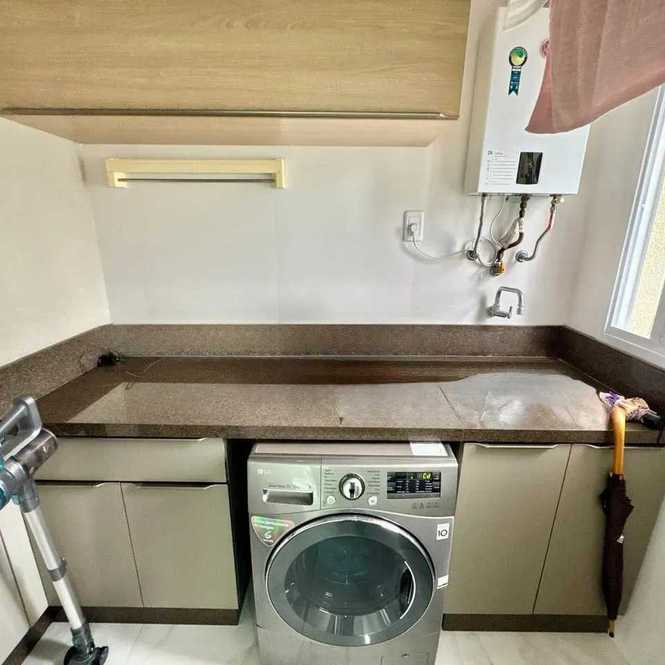 - Sala ampla, cozinha, área de serviço e lavabo