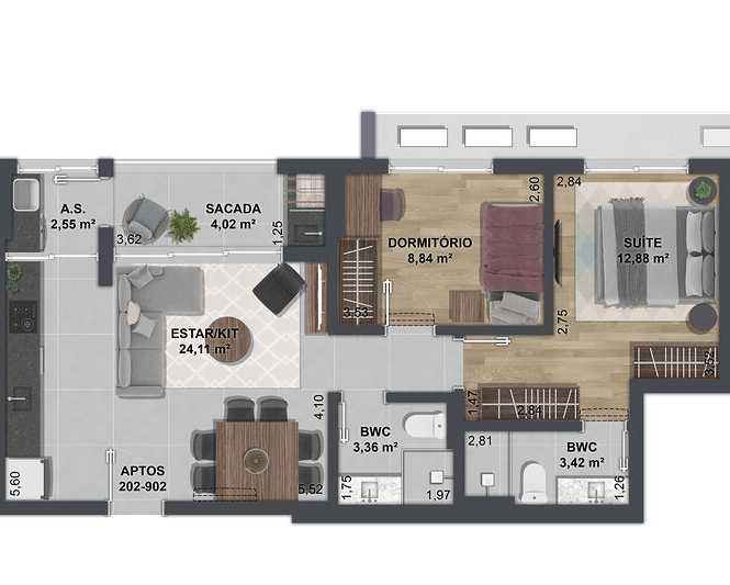 Planta 02 - 2 dorm 80m²
