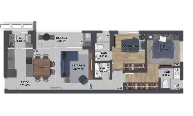 Planta 03 - 2 dorm 80m²