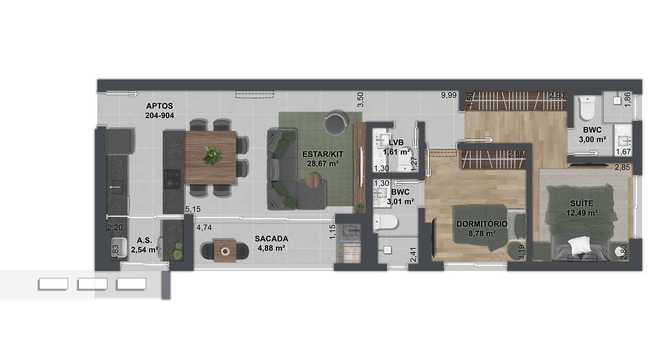 Planta 01 - 2 dorm 73m²