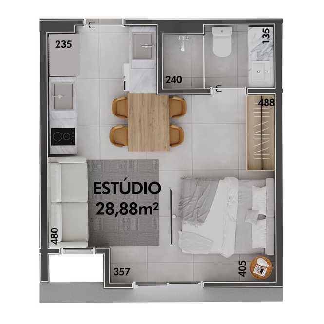 • Planta 01 - 1 dorm 28,88m² - studio