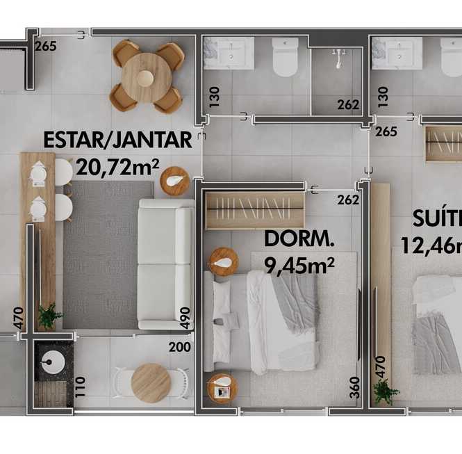 • Planta 05 - 2 dorm 63,37m²
