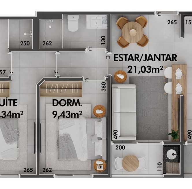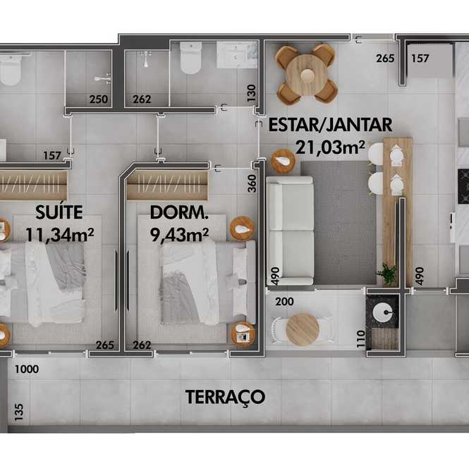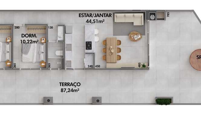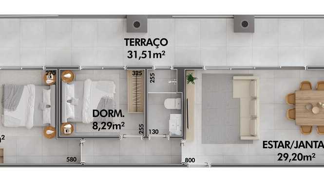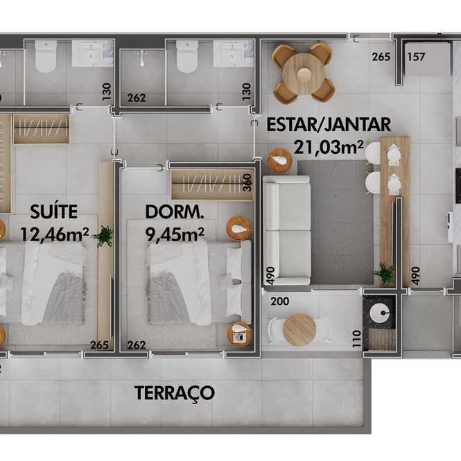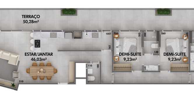 • Planta 03 - 1 dorm 61,96m² - duplex