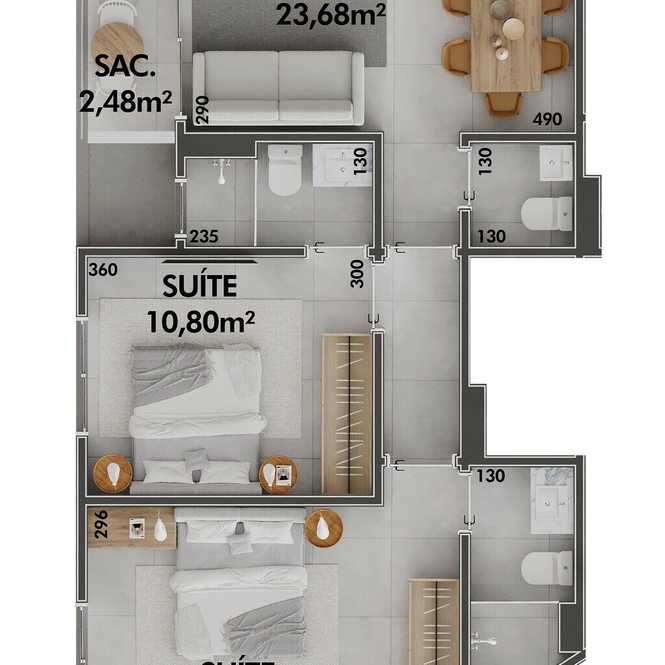 • Planta 08 - 2 dorm 68,81m²
