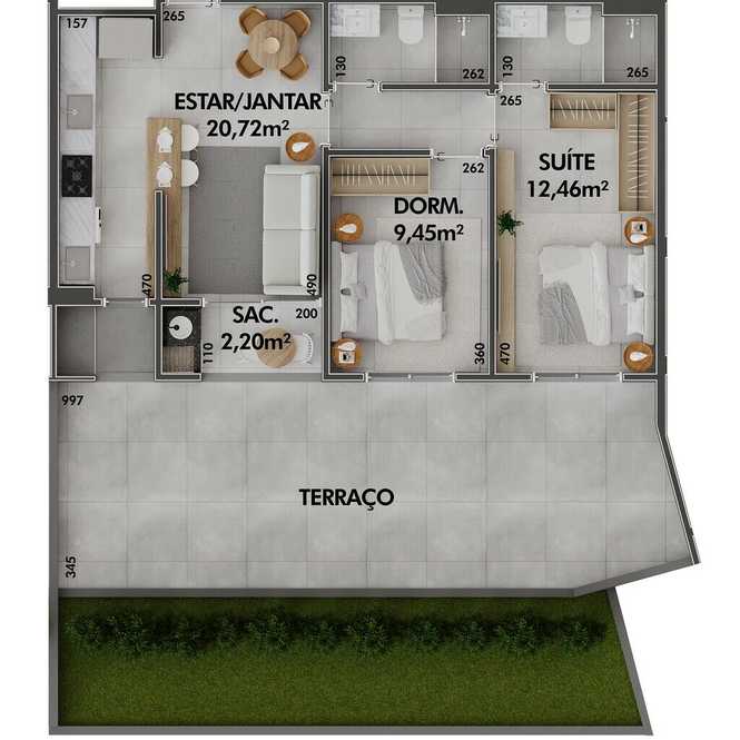 • Planta 09 - 2 dorm 75,07m² - garden